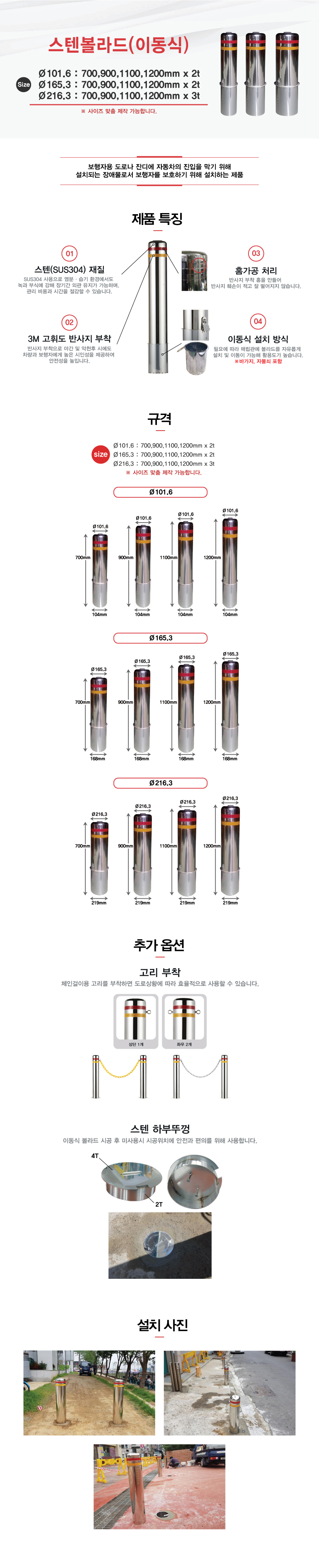 Ø216스텐볼라드(이동식)