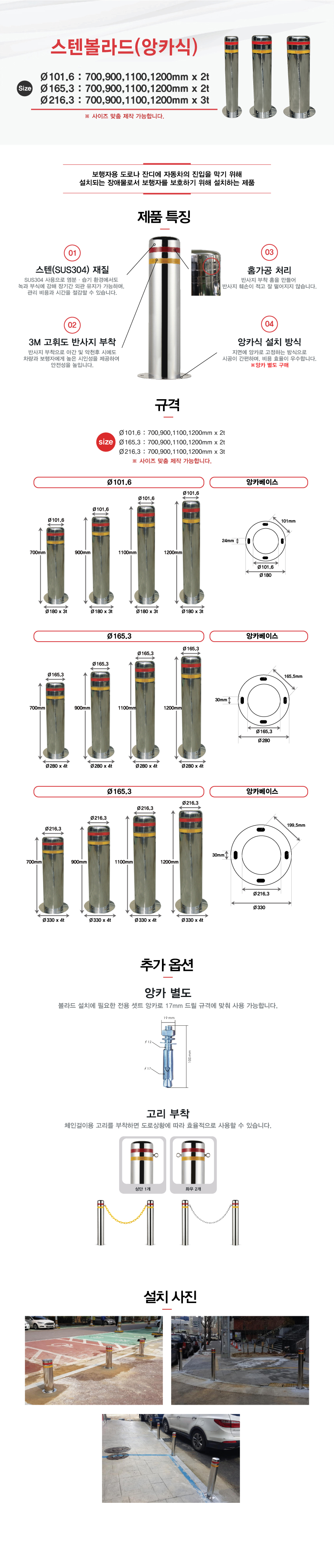 [H-10 스텐(스틸)볼라드 스텐볼라드 (특수 사이즈 주문가능)] Ø165스텐볼라드/앙카