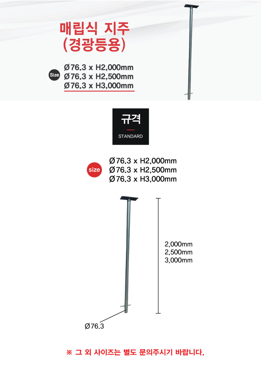 Ø76.3 x H2000mm, Ø76.3 x H2500mm, Ø76.3 x H3000mm