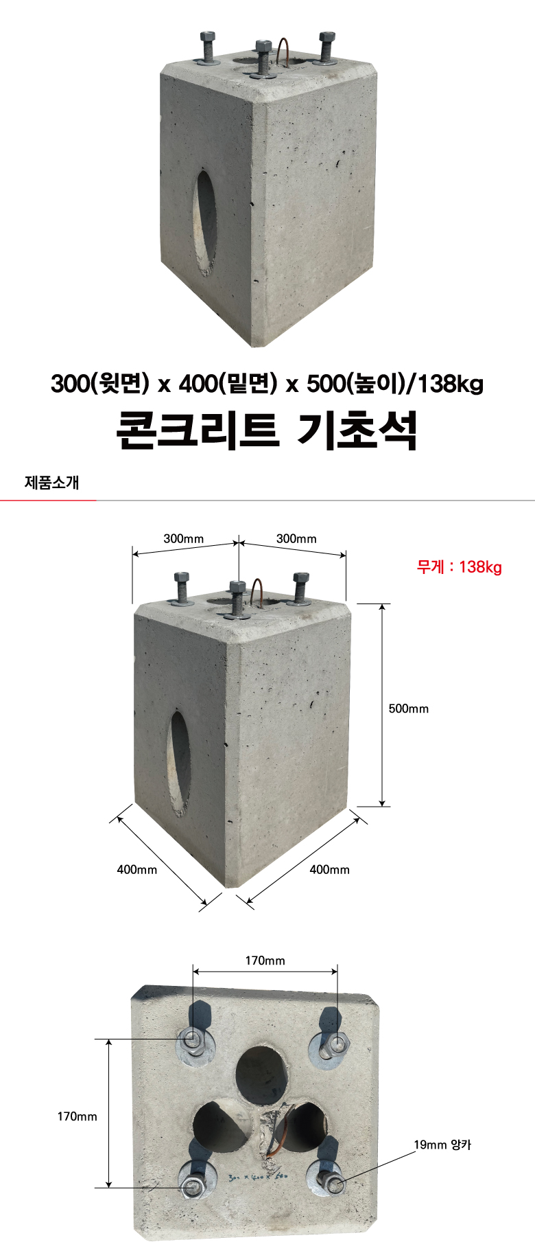 교통표지판/발광형표지판 기초석(콘크리트)/기초앙카] 기초석 (소형)