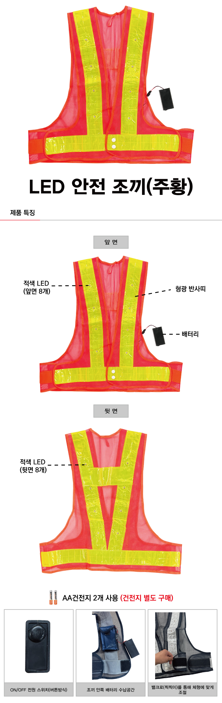 [H-55 안전조끼/작업티 안전조끼(열전사 인쇄 가능)] LED 안전조끼(주황)