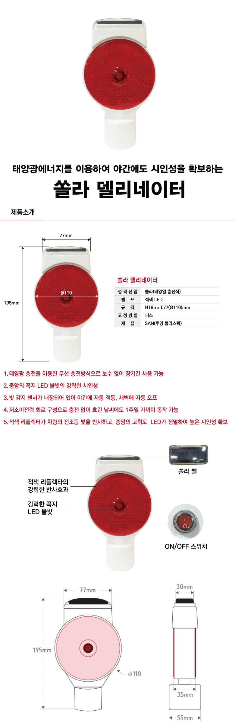 [H-14 도로안전용품 윙카호스/델리네이트] 쏠라 델리네이터