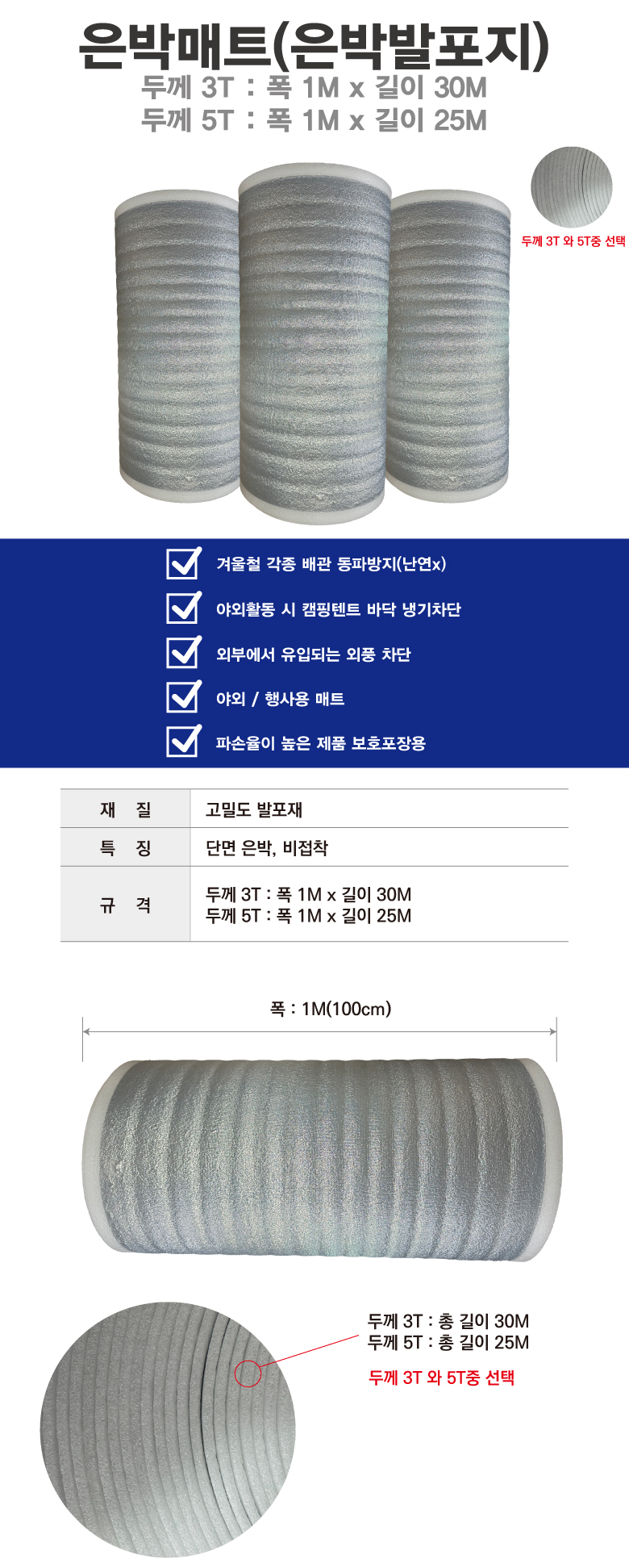 두께 5T : 폭 1M x 길이 25M