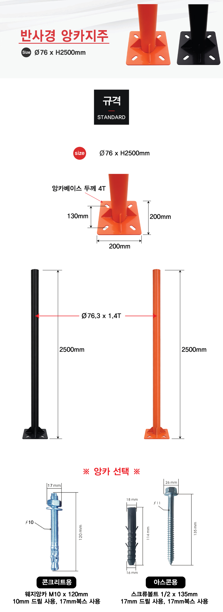 [H-13 반사경 반사경 부속자재] 반사경앙카지주(검정)
