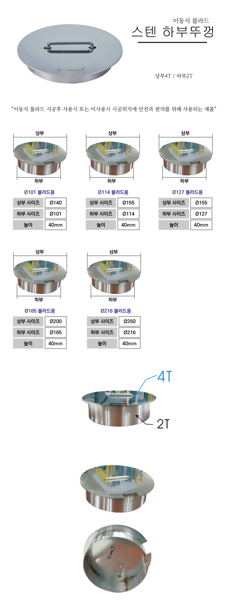 [H-10 스텐(스틸)볼라드 스텐볼라드 (특수 사이즈 주문가능)] 이동식하부스텐뚜껑