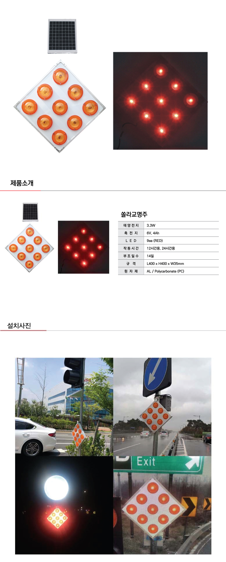 [H-24 쏠라교통표시등 교명주/수신호기] 쏠라교명주표지판