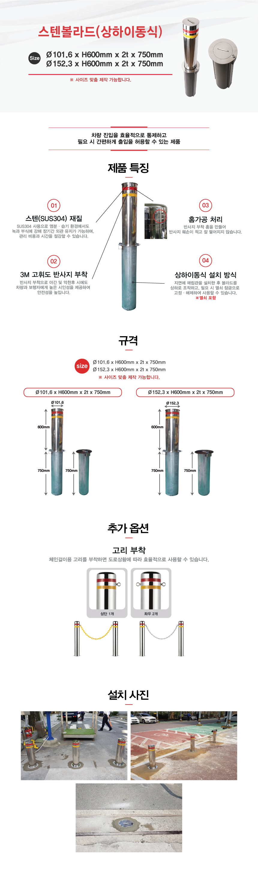 [H-10 스텐(스틸)볼라드 스텐볼라드 (특수 사이즈 주문가능)] 스텐볼라드(상하이동식)