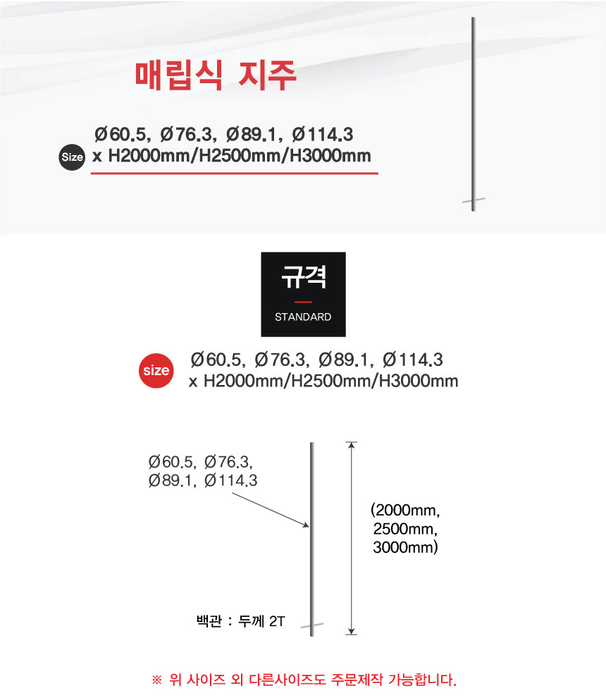 Ø60, Ø76, Ø89, Ø114 x H2000/2500/3000mm