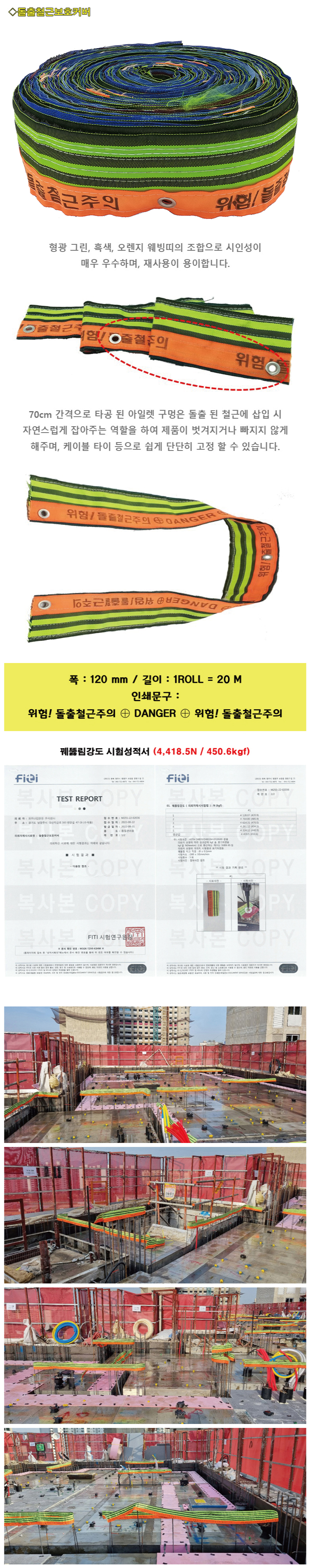 [H-51 건설안전용품 안전테이프 및 웨빙띠] 돌출철근보호커버