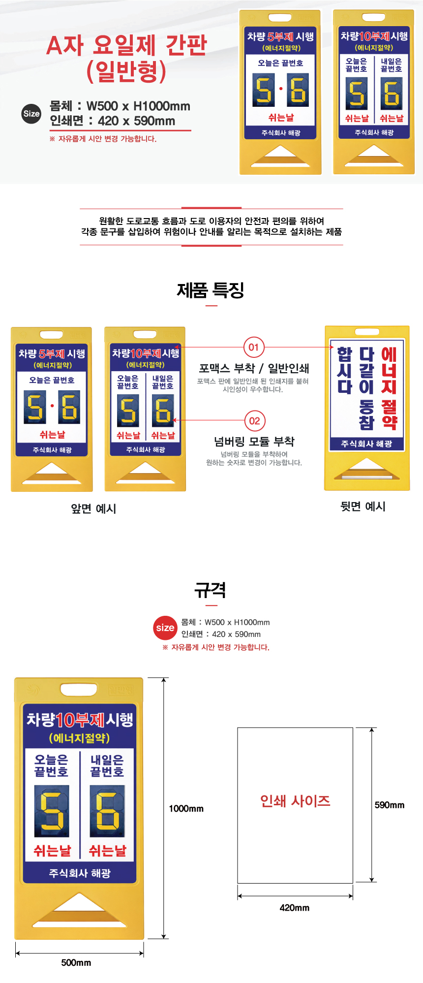 [H-3 주차금지(A자/원형) A자주차금지(기타 인쇄문구 가능)] A자 요일제 간판(일반형)