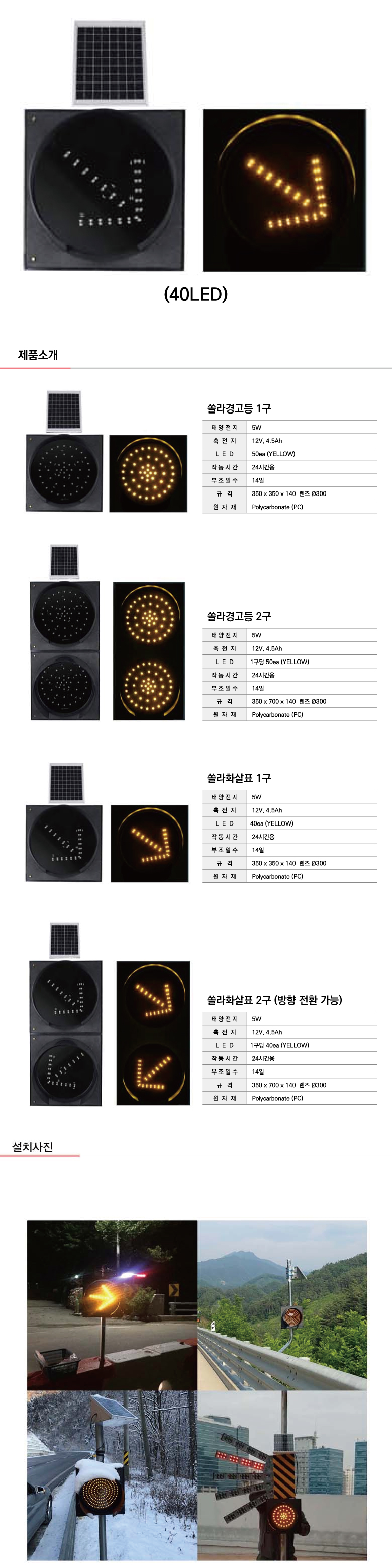 [H-24 쏠라교통표시등 경고등] 쏠라화살표1구(황색)